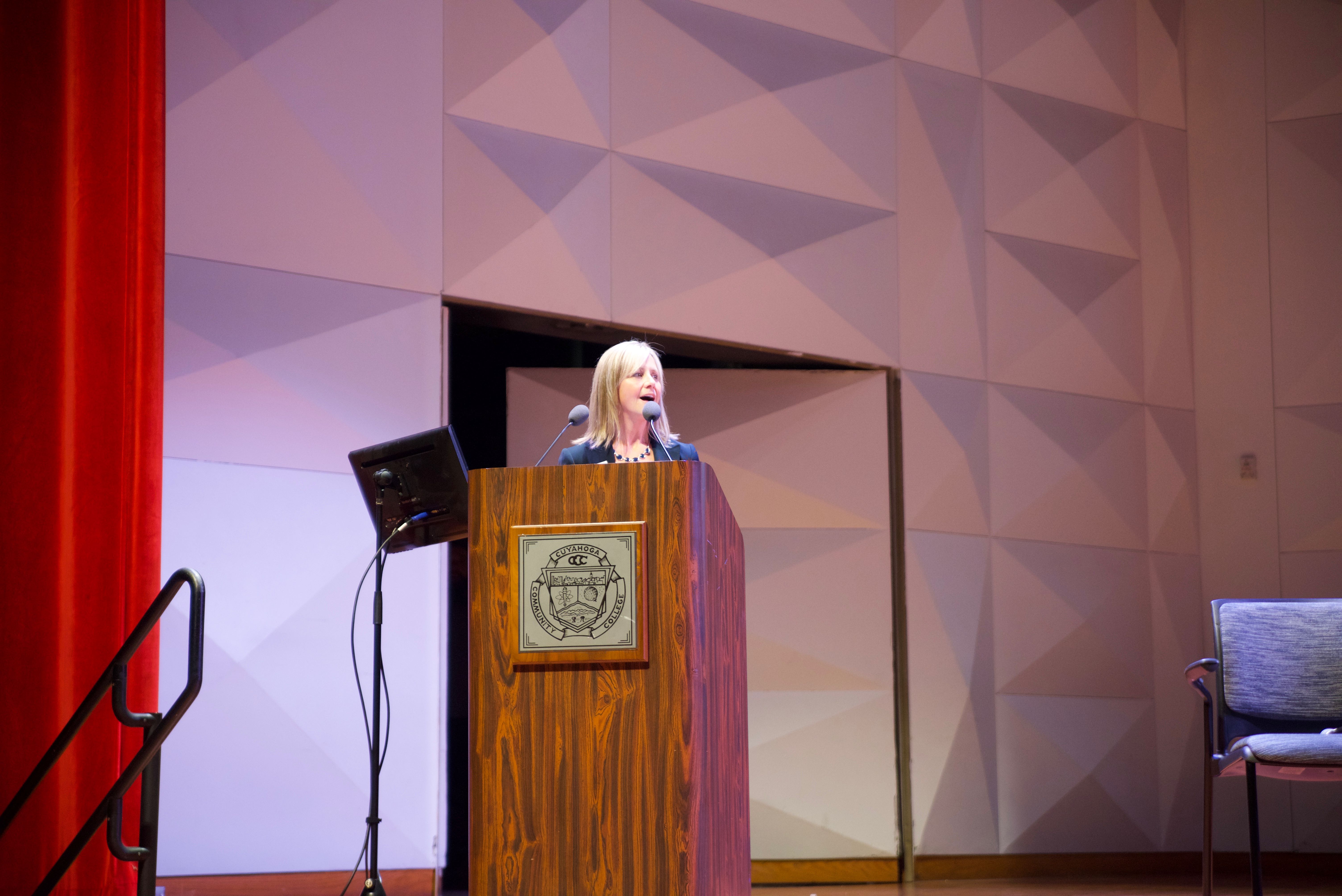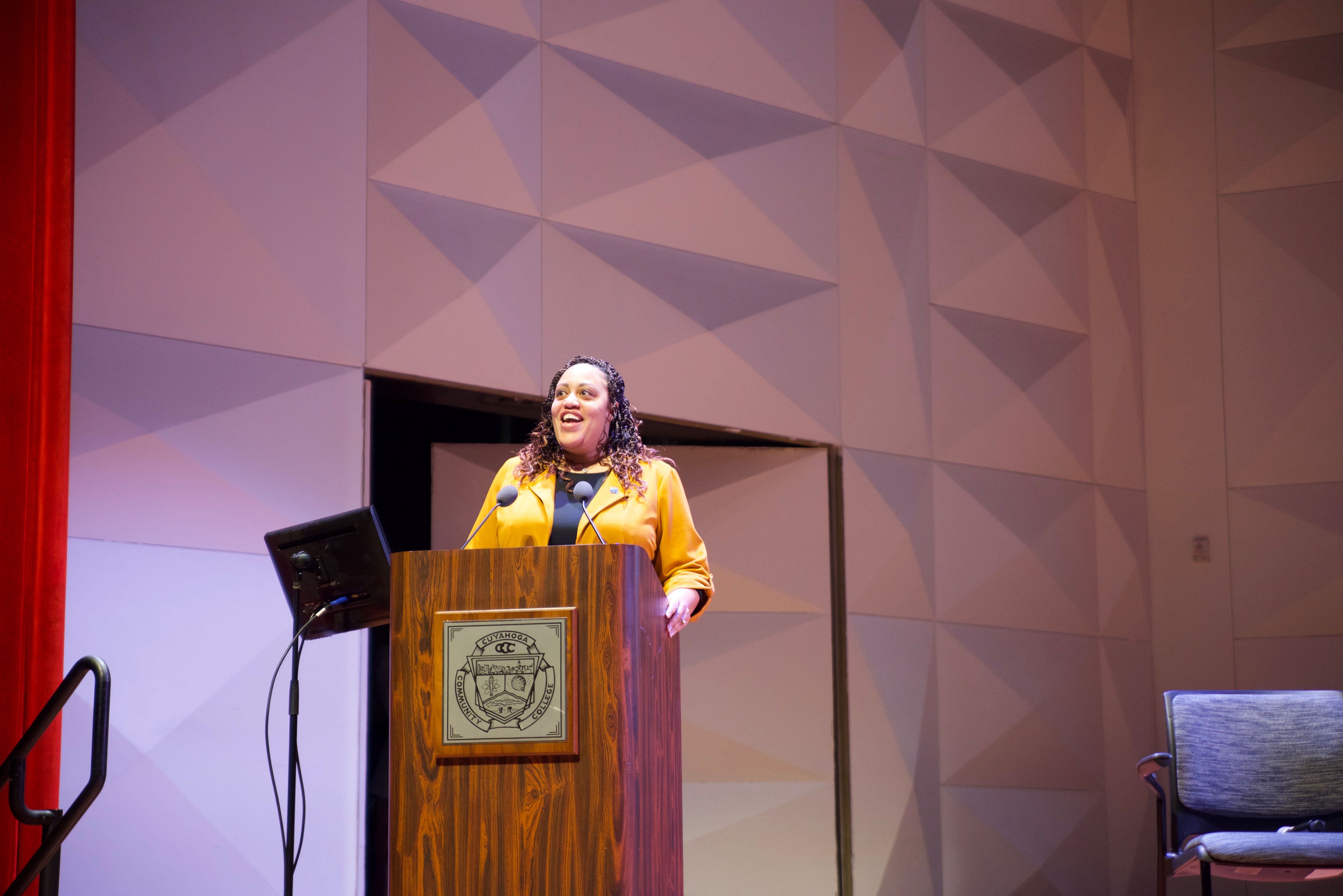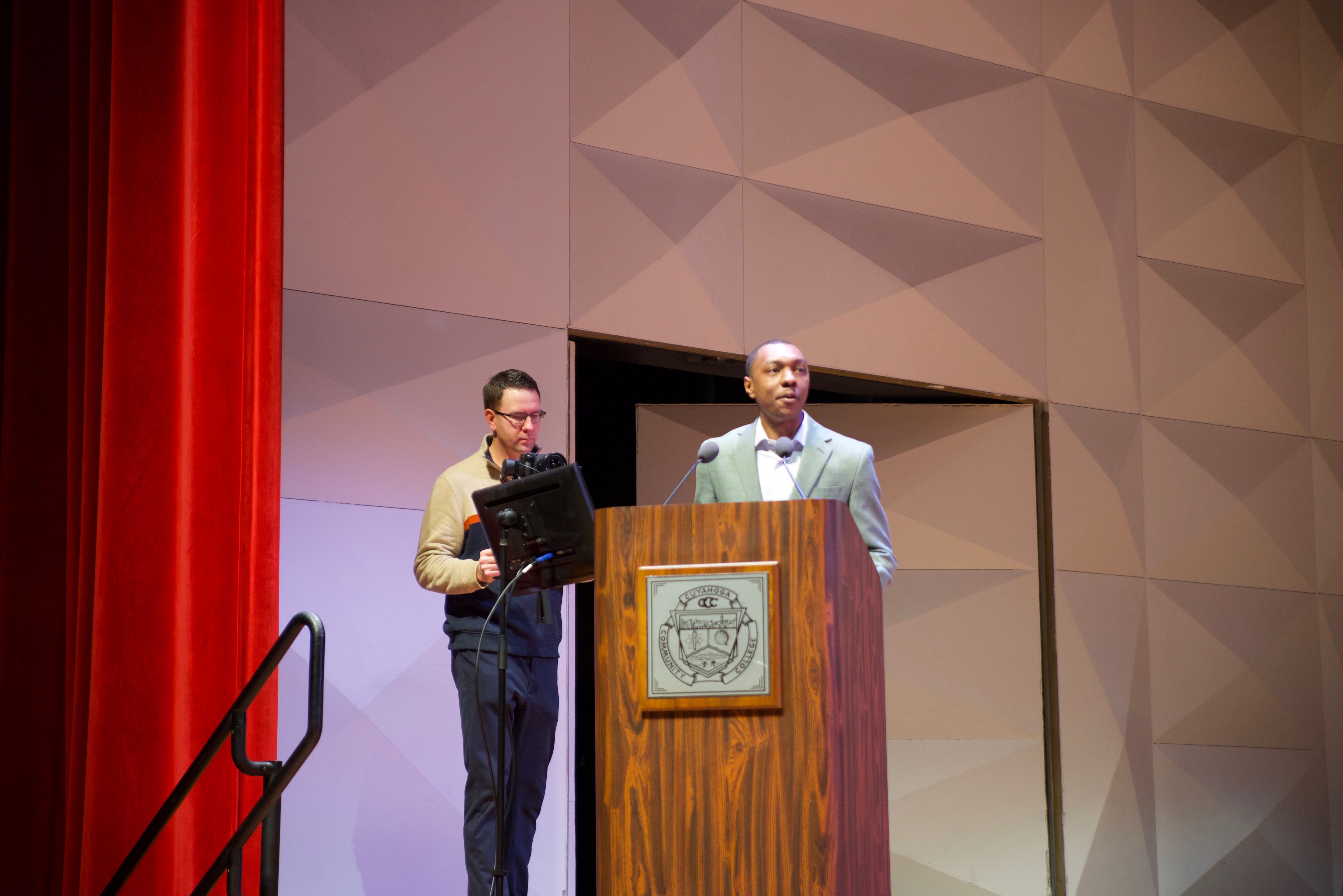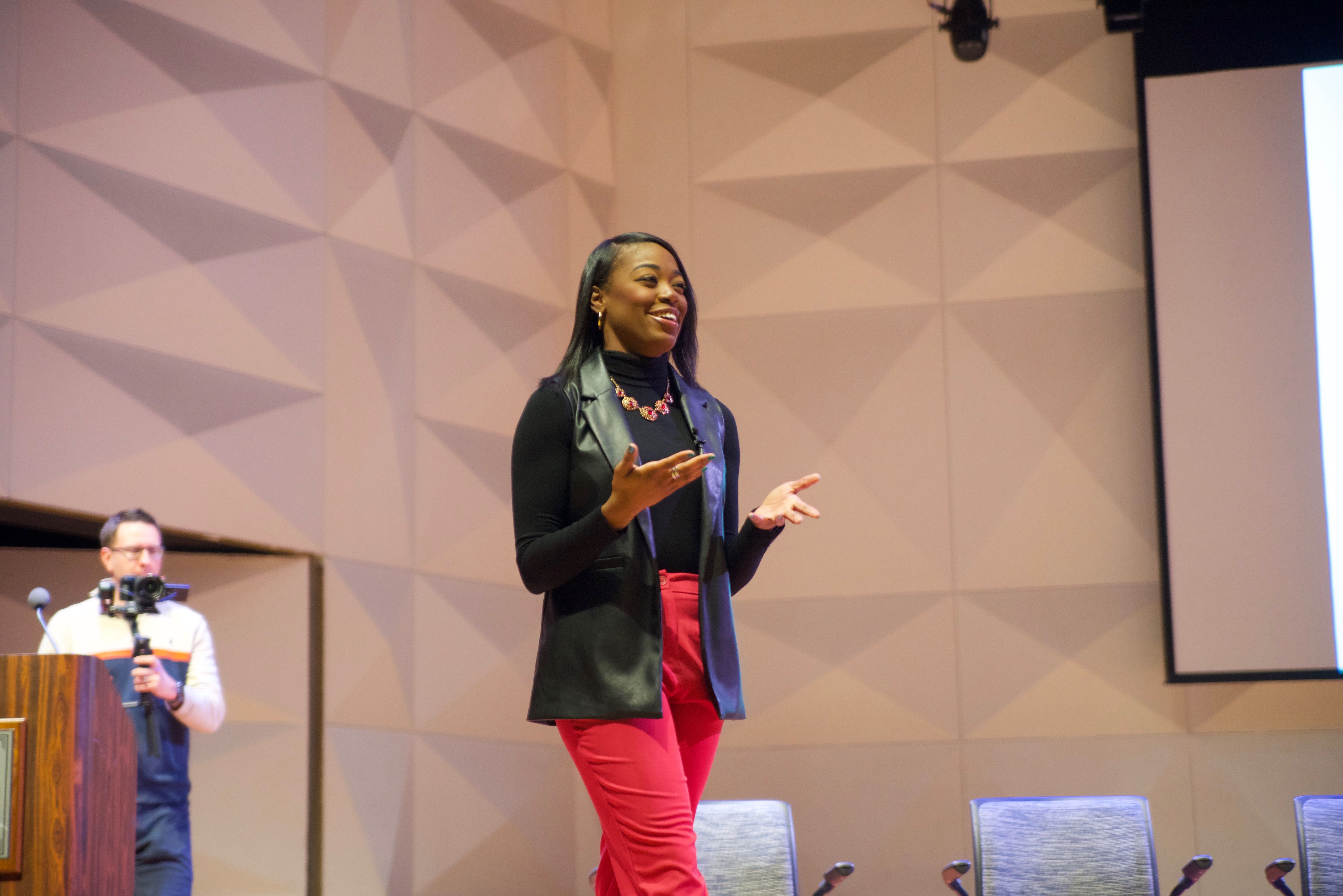 Kierra Cotton, a digital reporter for the WKYC TV-3 award-winning “What’s New” 5 p.m. newscast, welcomed the students and introduced the speakers and panelists. Cotton delivers entertainment headlines while also reporting on feature stories, highlighting the vibrant Northeast Ohio community. She discussed her educational journey and how she was able to step in front of a camera for the first time in college and the impact that made on her career path.