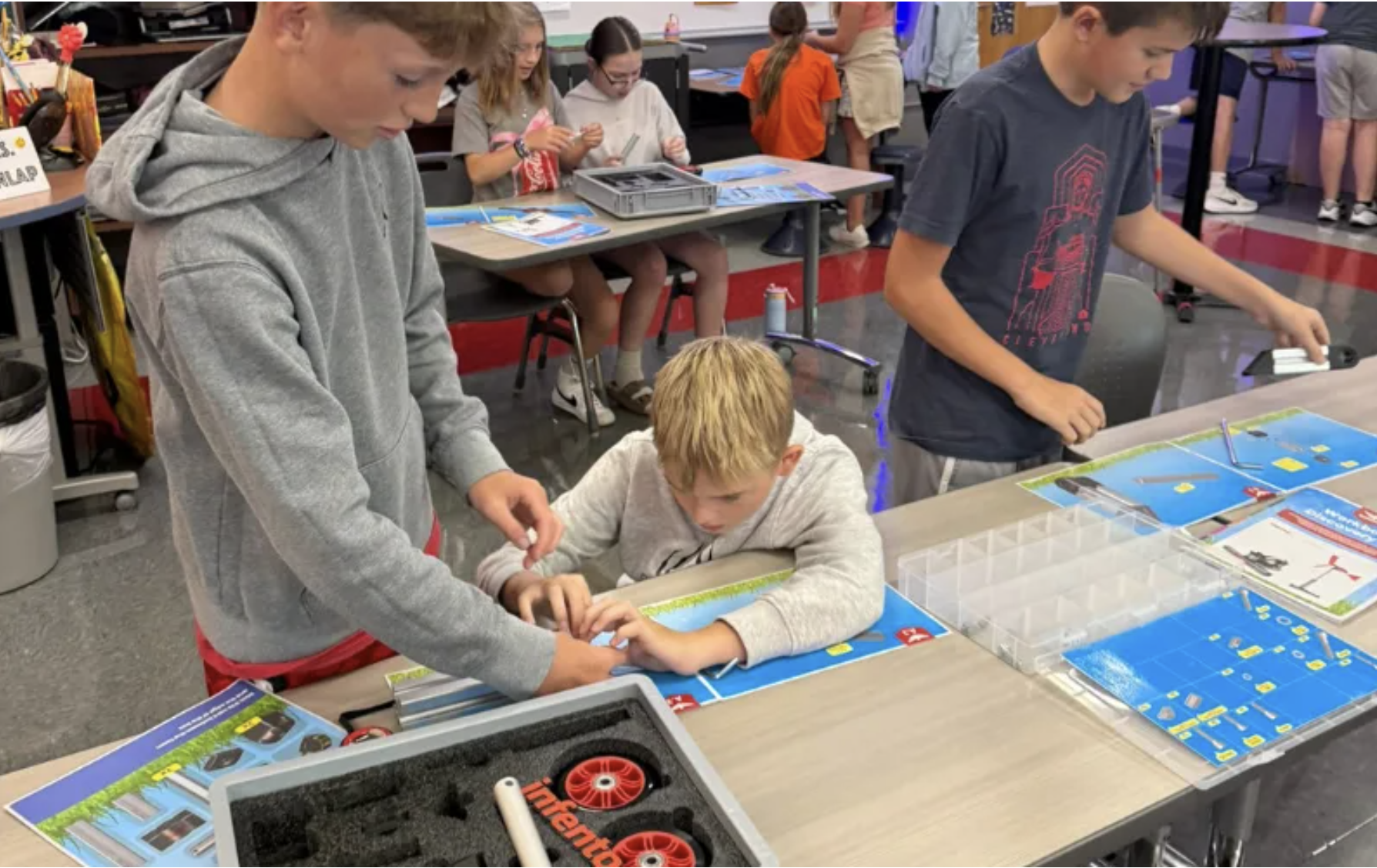 Another project requiring critical thinking and hands-on building is assembling Infento kits. These kits allow students to collaborate and discuss how to build life-size vehicles using hands-on skills and parts.